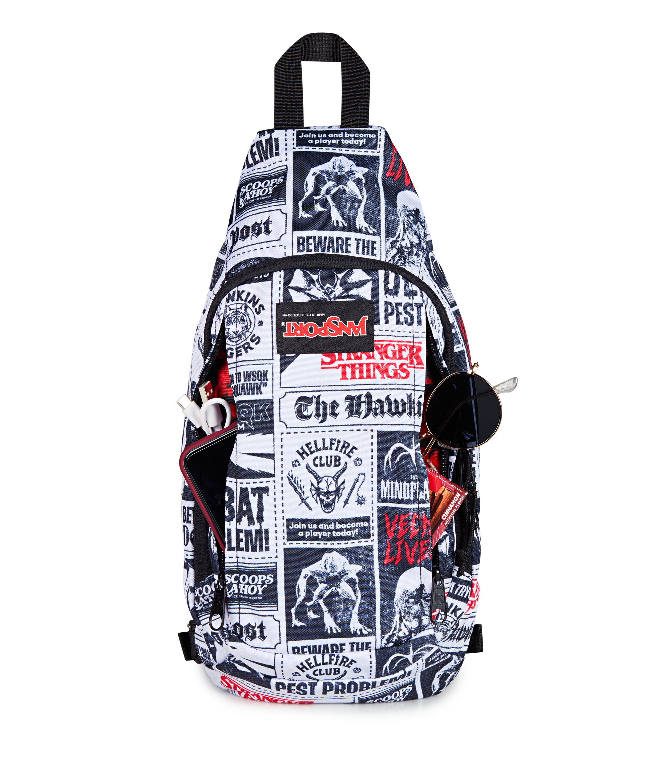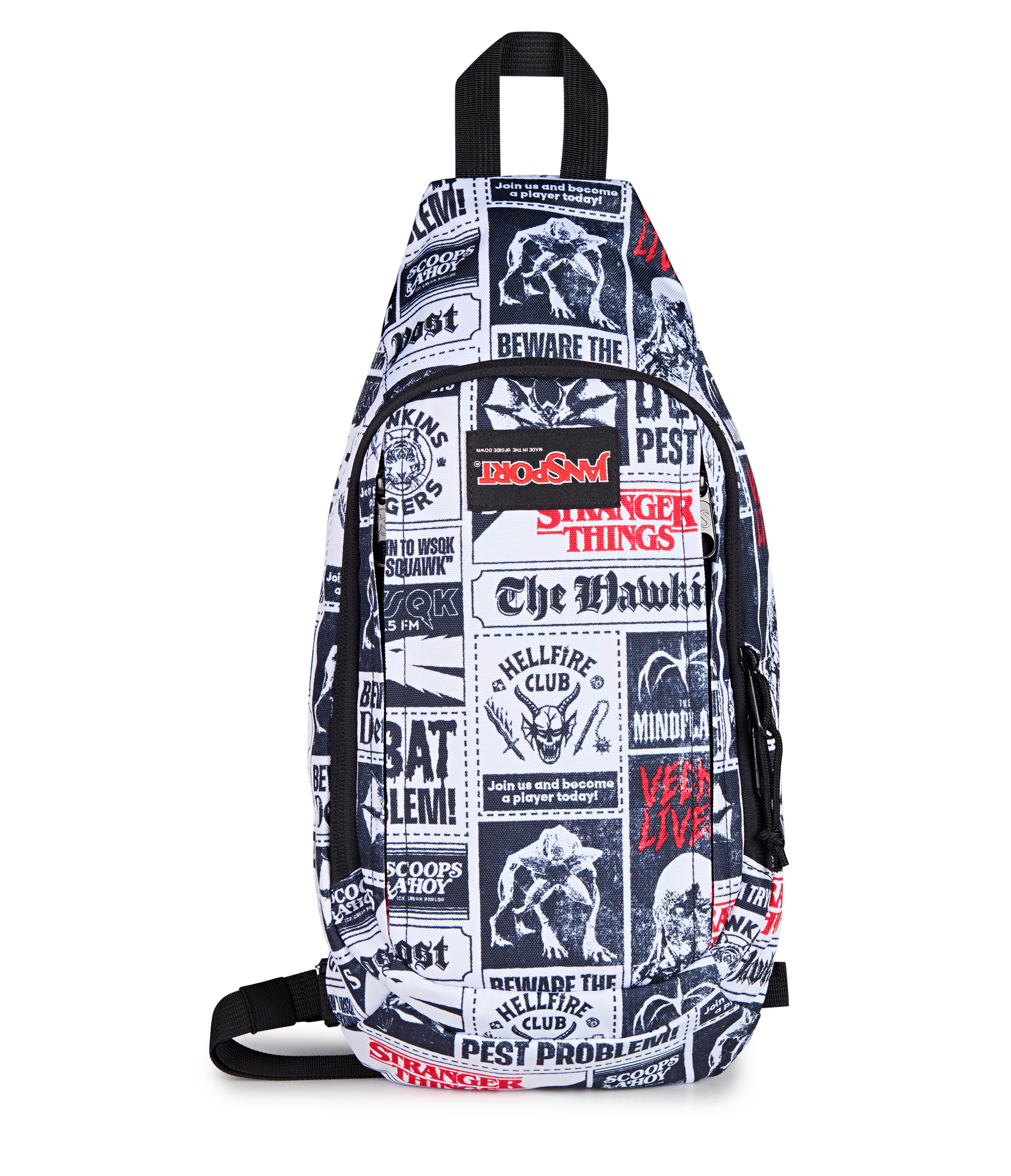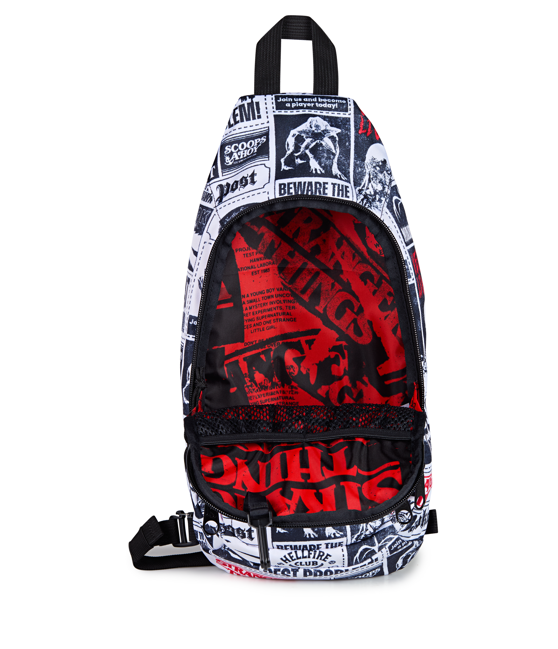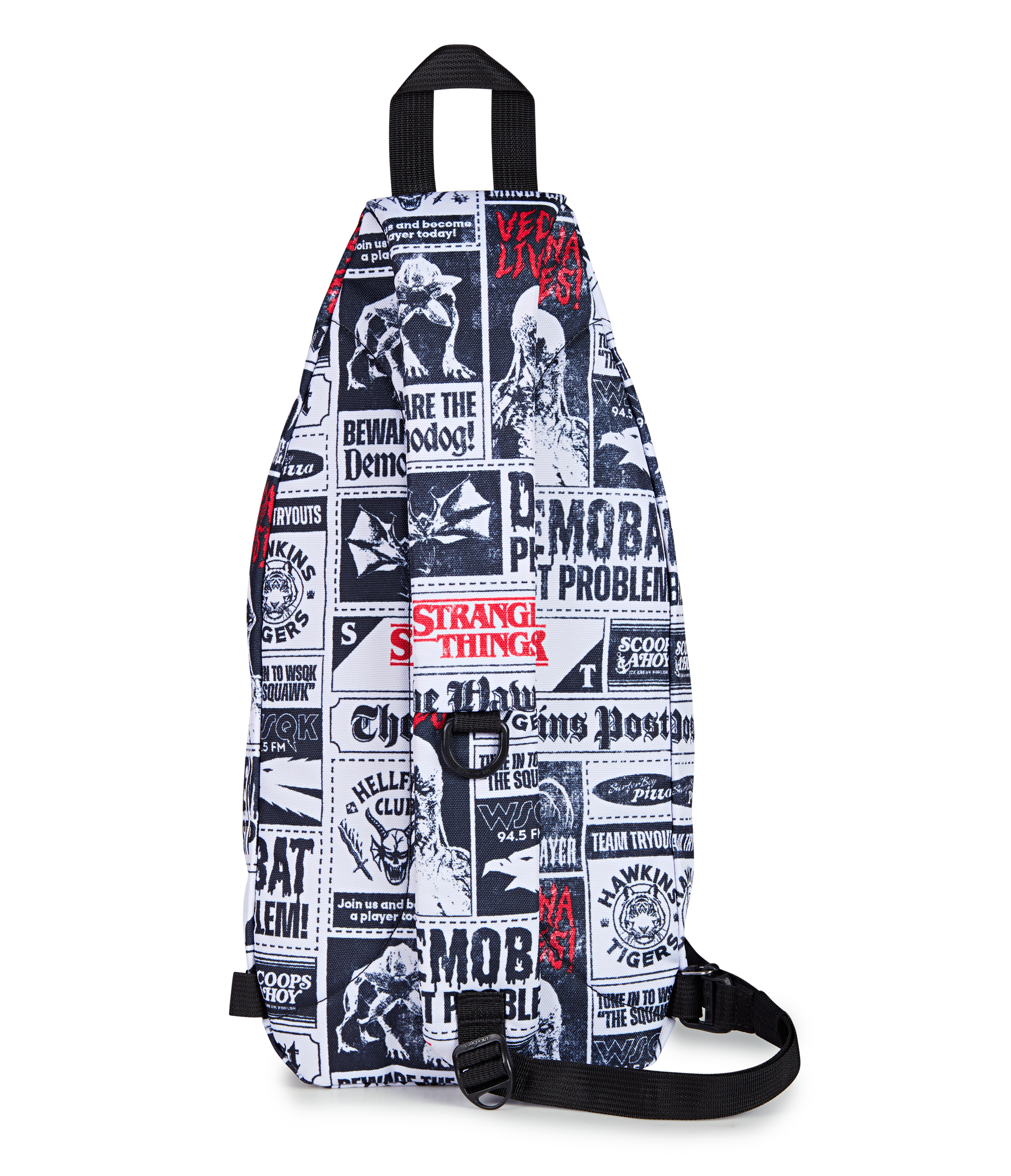 Snag the scoop and stay light on your feet. The Move Sling keeps intel close and hands free. with just enough space for your vintage camera. red room prints. or whatever gets you through the next deadline. Adjustable and padded for comfort on the go. it slings across your back like you’ve got front-page secrets to uncover. Wrapped in a Hawkins Post print stacked with articles. warnings. and whispers that were never meant to see the light.