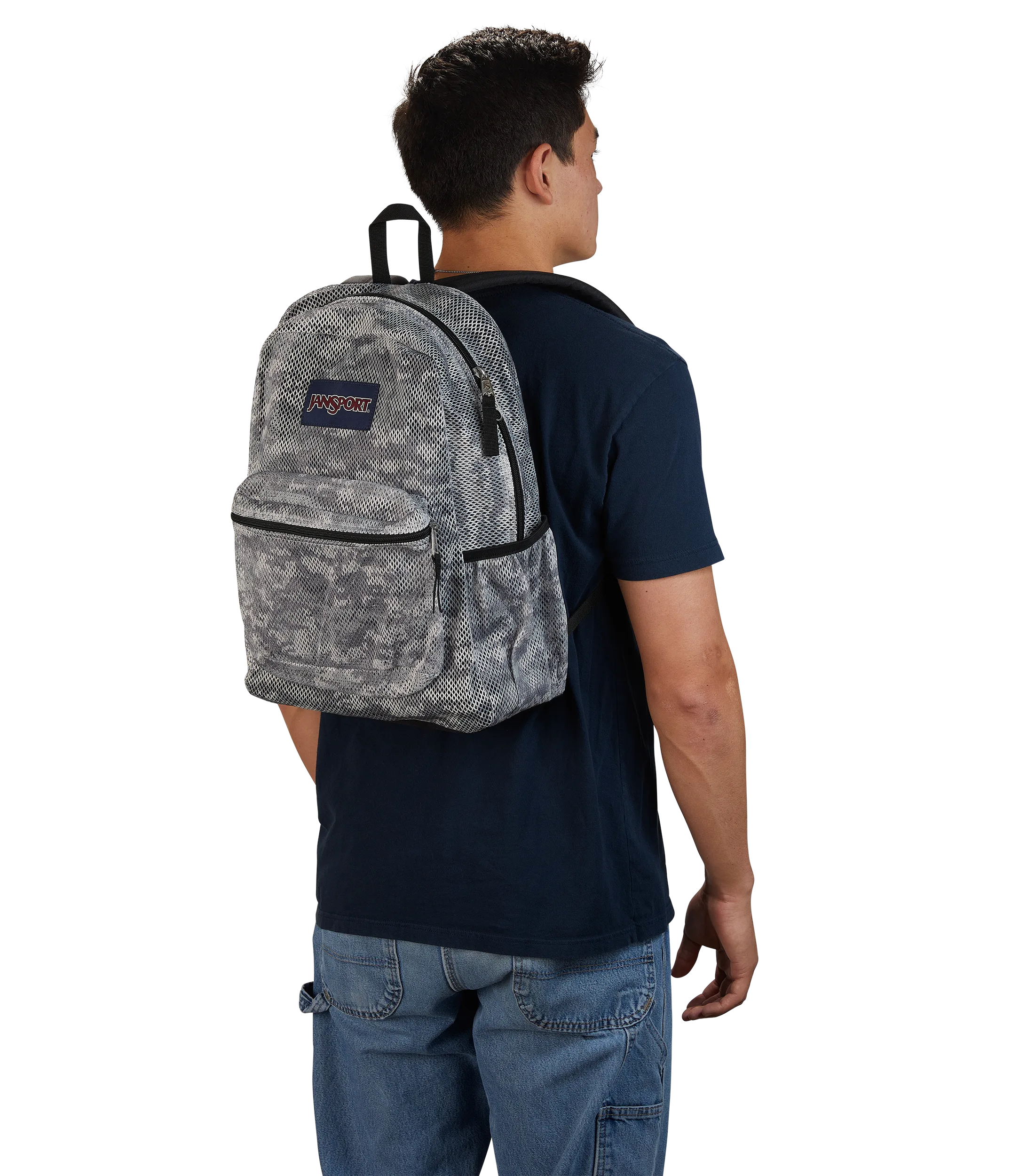Get a good look at (and into) the Eco Mesh Pack. Nobody’ll be surprised by what’s in it. but they might be surprised by the fully padded back panel and classic straight-cut shoulder straps.