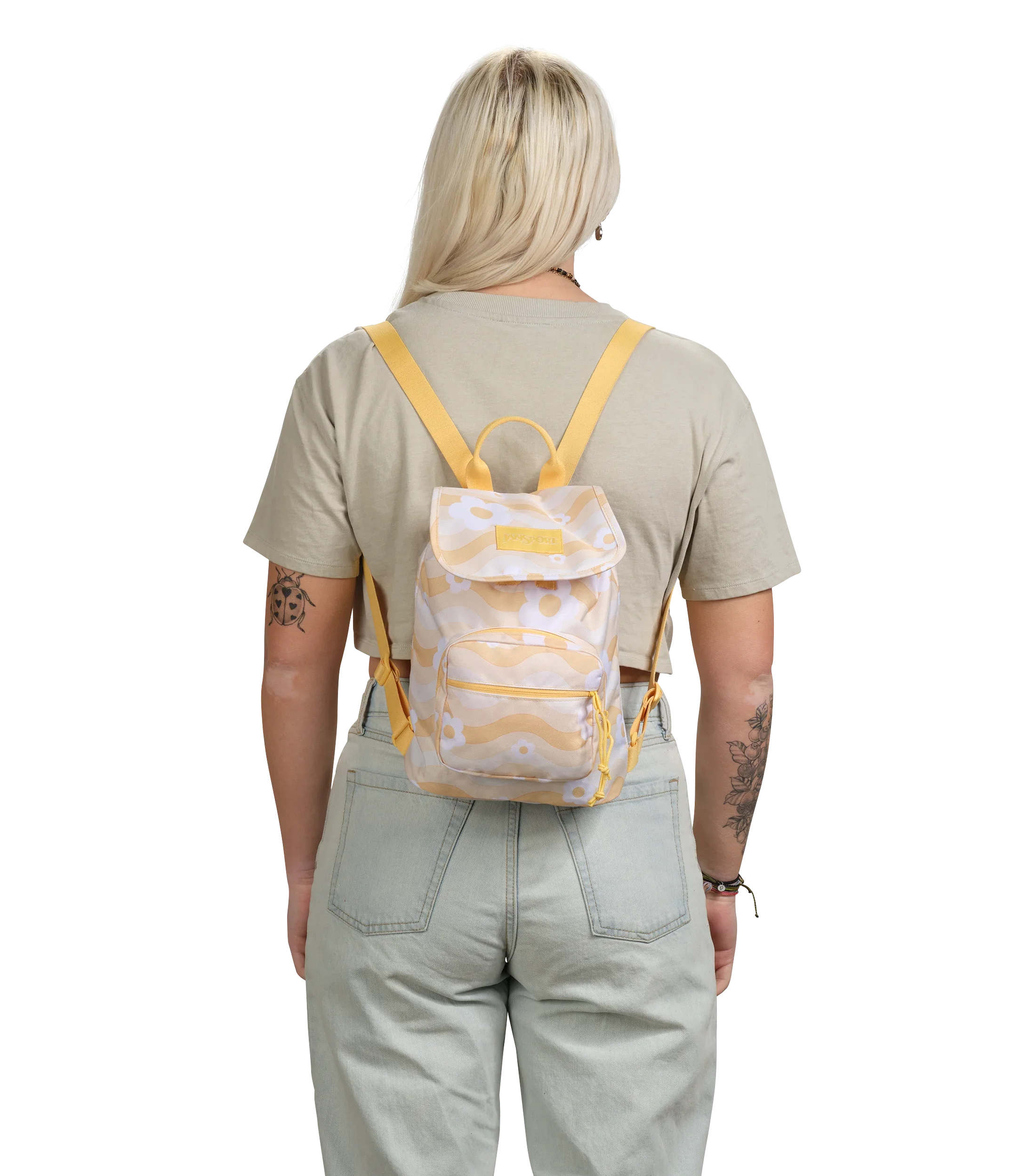The aesthetics of an accessory. with the practicality of a backpack. This mini will hold 8 liters of whatever your outing requires. Access and store your stuff easily with flap top and drawstring closure. Keep the keepsakes safe with front zippered compartment and zipper stash pocket.