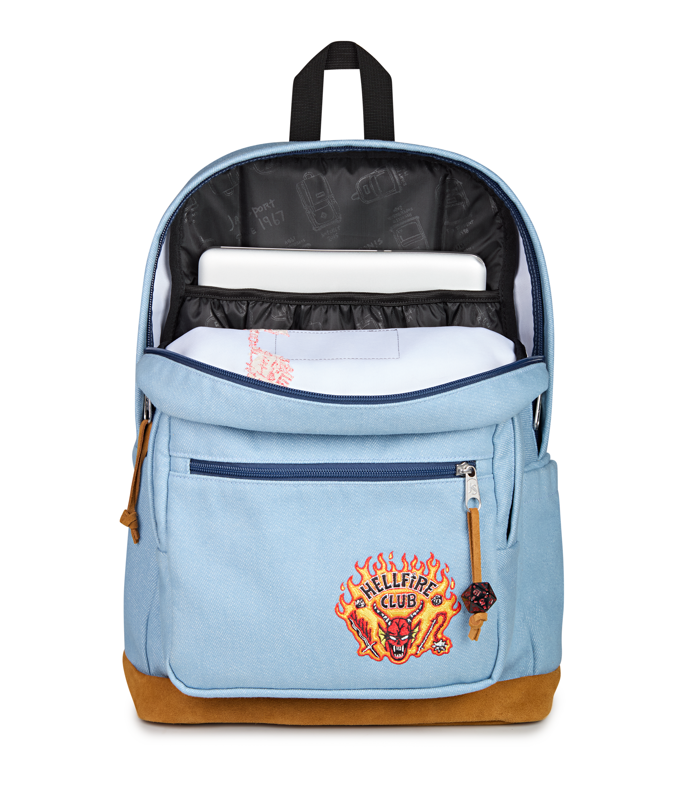 Roll dice. Raise hell. Carry everything with the Right Pack Hellfire Club. Featuring a suede leather bottom for extra durability. a side water bottle pocket. and an internal laptop sleeve. For underdogs who don’t fold. but fight together.